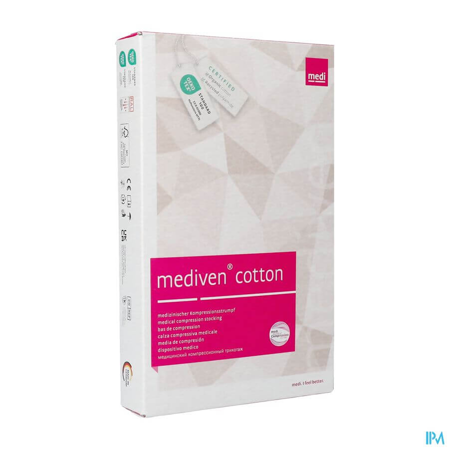 Sentez la différence. Faites la différence : mediven cotton est un bas de compression médical tricoté en rond, composé à 27 % de coton biologique authentique. Le produit est utilisé pour la compression - y compris dans le traitement des plaintes et des troubles du système veineux de la jambe. Il s'agit notamment des troubles veineux chroniques des stades I à II selon Widmer ou C0s à C4 selon CEAP, de la phase initiale après le traitement des varices ainsi que des problèmes de congestion, des œdèmes pendant la grossesse et des nausées pendant la grossesse. mediven cotton est également utilisé dans la prophylaxie de la thrombose pour les patients mobiles.